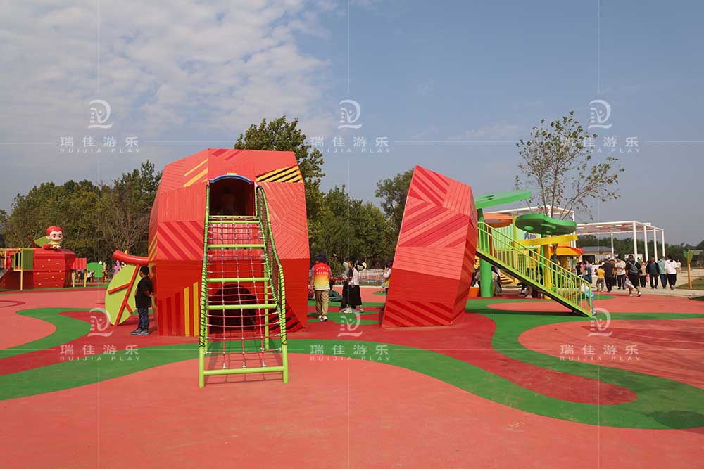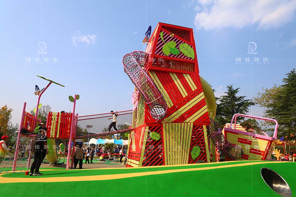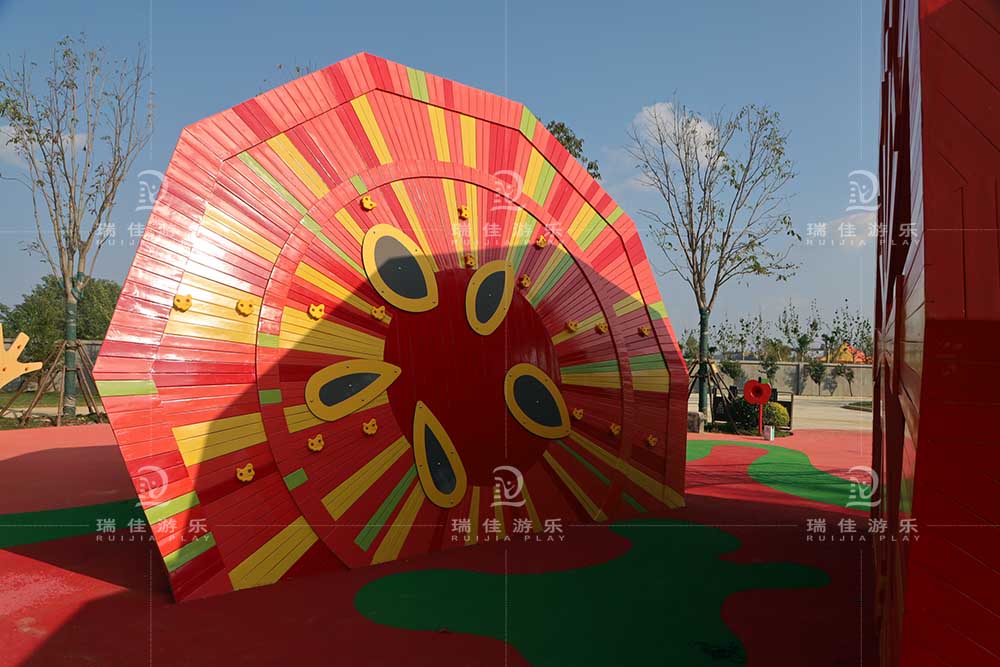以蘋果造型為主題打造的無動力兒童游樂攀爬設施,其外觀巧妙地模仿了蘋果的形狀,內部和外部精心設計的繩索攀爬和滑梯裝置,孩子們在攀爬過程中,既能釋放活力,又能鍛煉運動能力。